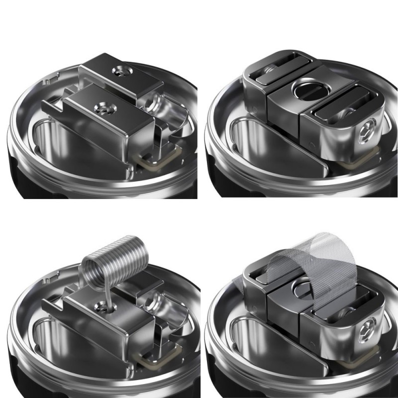 Im Gryphus V2 RDL RTA ist das bereits bekannte und beliebte MeExSo Mesh Deck mit innovativer Durchschleiftechnik vorinstalliert. Das Einsetzen des Meshstreifens ist sehr einfach gestaltet und gibt sich auch anfängertauglich. Neben der einfachen Befestigung des Meshstreifens mit Schraubklemmen sorgt ein integrierter Keramik-Federvorspanner dafür, dass die Watte mit genau dem richtigen Druck gegen den Meshstreifen gepresst wird.